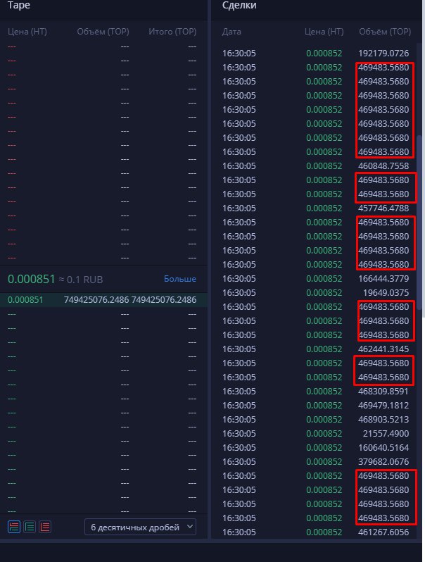 Если посмотреть в стакан, то станет ясно, что большинство монет скупили боты, очень много покупок на одну и ту же сумму.😡😡😡