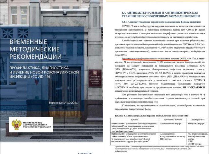 Недавно вышли очередные "временные методические рекомендации" по лечению "страшной инфекции", тринадцатые по счету. Аж на 237 страницах сей документ. Интересно то, что некоторые пункты поменялись до диаметрально противоположных: теперь оказалось, что антибиотикотерапия назначается только при убедительных признаках присоединения бактериальной инфекции, при этом это осложнение довольно редко встречается. Да неужели? А о чем битых полтора года говорим? Зачем запихивали в людей даже не по 1-2, а по 5-6 антибиотиков одномоментно? Что за цель у вас была, неуважаемые чиновники от медицины и примкнувшие недобросовестные коллеги? Правда, были случаи в моем личном окружении, когда эти препараты назначались, а на ушко врач говорил пациенту: пить их не рекомендую. Но это всё же исключение. А теперь вон оно что. И чему удивляться тогда, что доверия к этим "схемам" никакого нет, а заодно и к медикам, их назначающим. К сожалению, народ припомнит всё: и танцульки в костюмах космонавтов, и нагнетание паники, и вот такое лечение... Очень стыдно и обидно за коллег, выполняющих такие приказы...