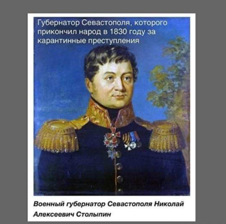 3 июня 1830 года жители Севастополя убили губернатора Николая Столыпина и всех санитарных врачей.‼️ На этом "эпидемия чумы" в Севастополе завершилась.💥
