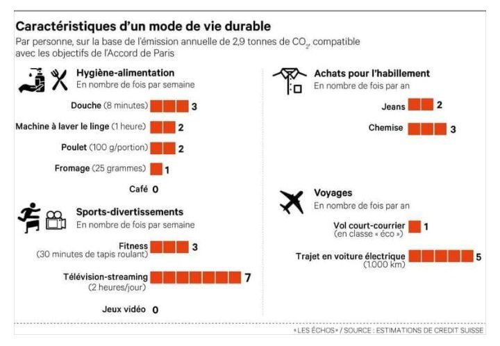🇪🇺 В швейцарском Credit Suisse подсчитали, как примерно должен будет жить европеец при «развитой зелёной повестке», чтобы уложиться в выброс на одного человека 2,9 тонн СО2 в год (норма, установленная Парижским соглашением):