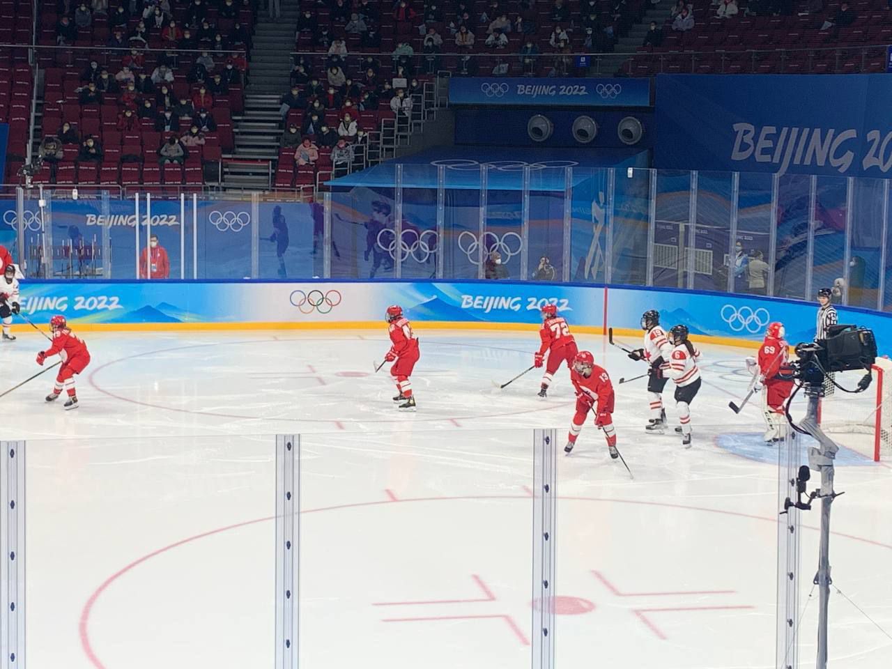 Игроки канадской команды отказались выходить на лед, но после обсуждений было решено начать игру, при этом обе команды были в масках. Олимпийский комитет России позже сообщил, что российские хоккеистки получили тесты и сняли маски в третьем периоде, однако канадские спортсменки продолжили играть в масках.