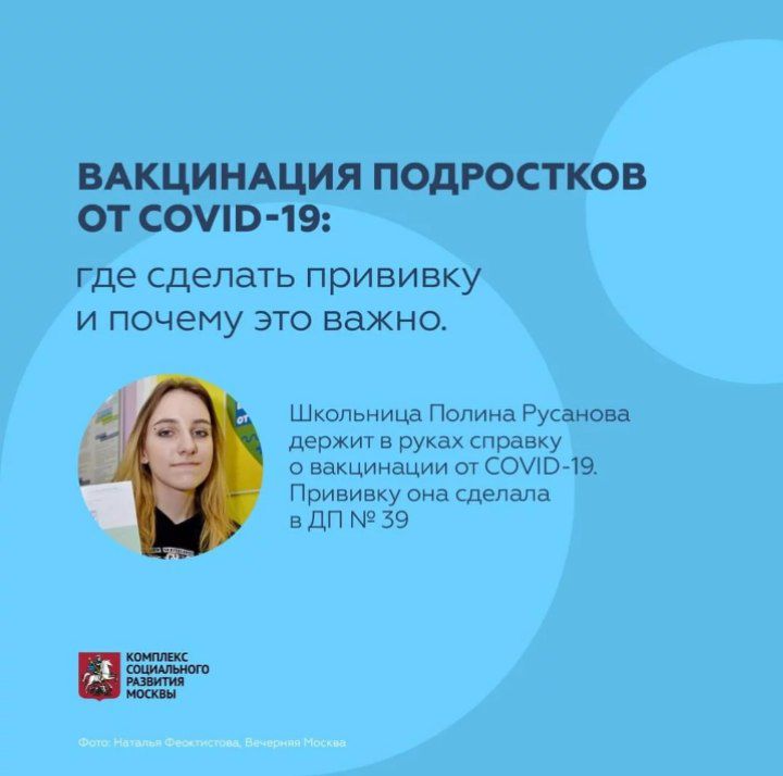 dzdmos 👧 Вакцинация подростков от 12 до 17 лет от COVID-19 проходит на базе детских поликлиник Москвы