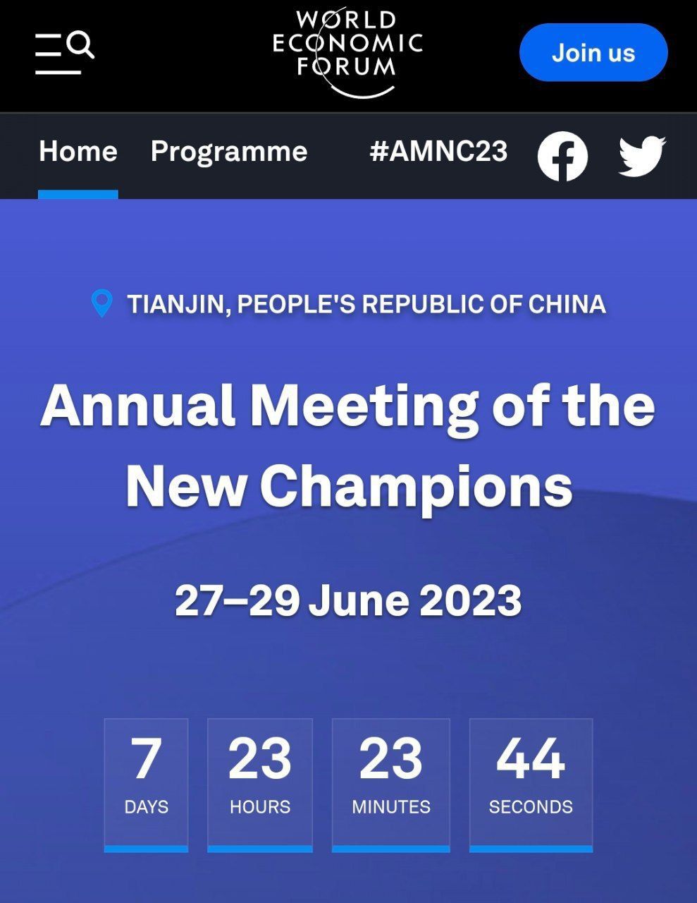 В конце июня состоится очередная встреча ВЭФ, на этот раз она пройдёт в Китае и носит громкое название «Ежегодная встреча новых чемпионов».