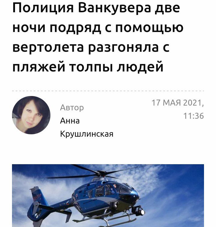 Канада... Во второй раз за эти выходные полиции Ванкувера пришлось задействовать вертолет КККП Air 1, чтобы осветить переполненный пляж English Bay в попытке вынудить отдыхающих разойтись по домам.