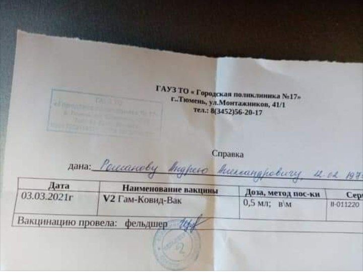 Стоит отметить, что между двумя этапами вакцинации Романова вышла новая рекомендация Минздрава — не ставить прививку людям, пережившим инсульт. Андрей Романов решил довести дело до конца. Если после первого укола тюменец чувствовал себя удовлетворительно, «переболеть» ковидом в легкой форме пришлось после второго этапа.