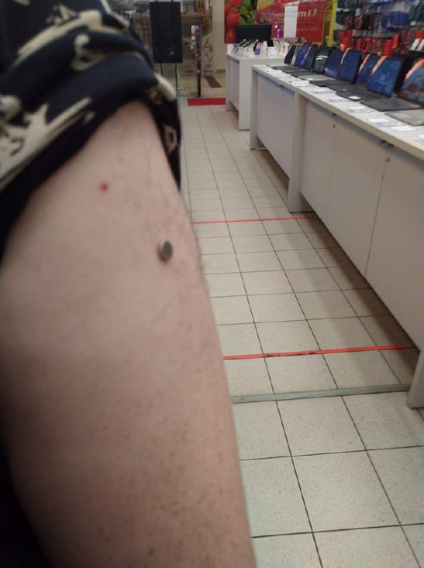 Короткая инструкция для тех, кто уже сделал прививку и хочет проверить. Ничего не будет с обычным магнитом на холодильник или большим размером. Нужен маленький магнитик, до 1 см и с очень сильной тягой (у меня было 8 мм х 2 мм).