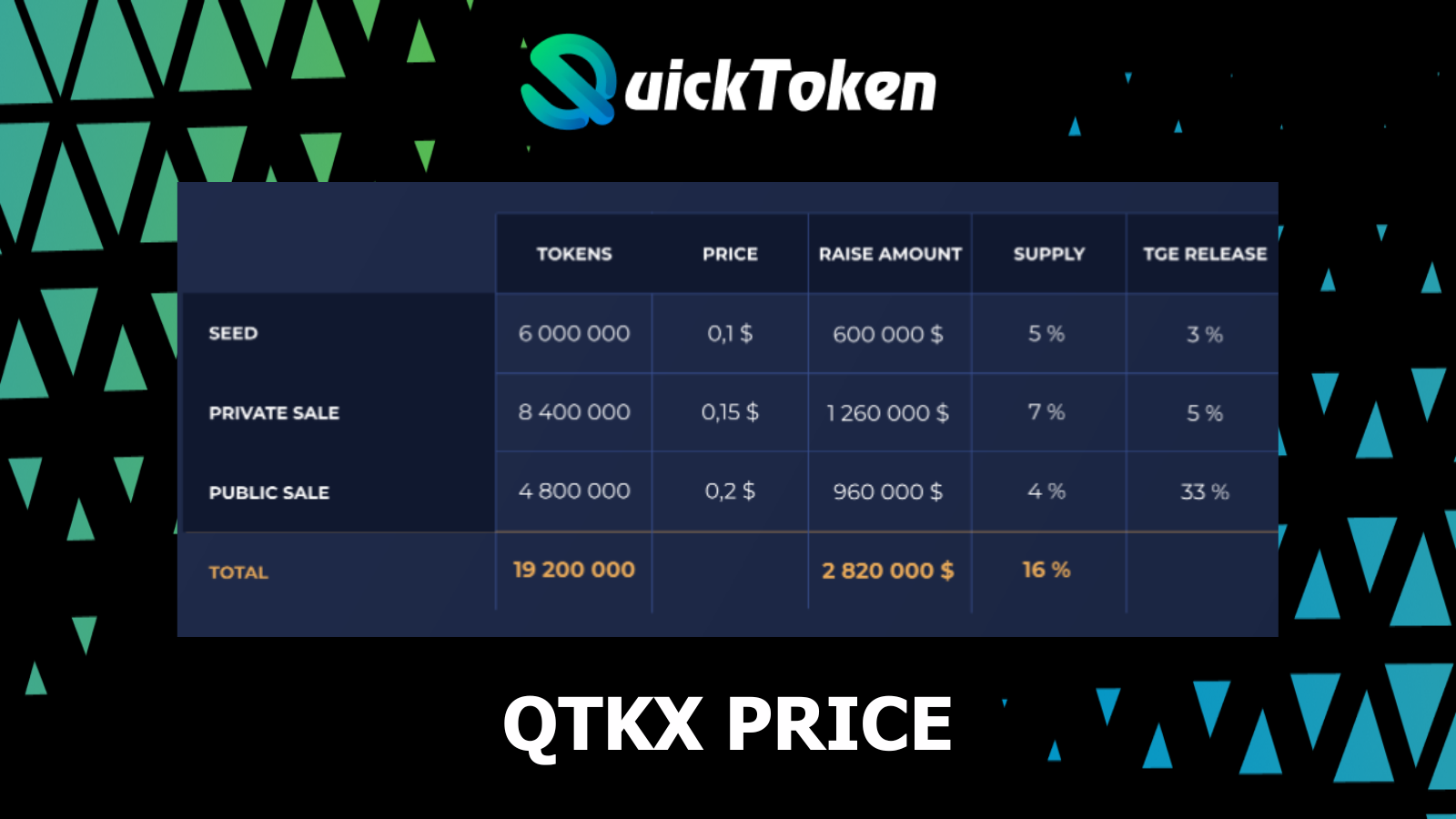 As a reminder, there is a SEED round in which you can buy QTKX token for $0.1.