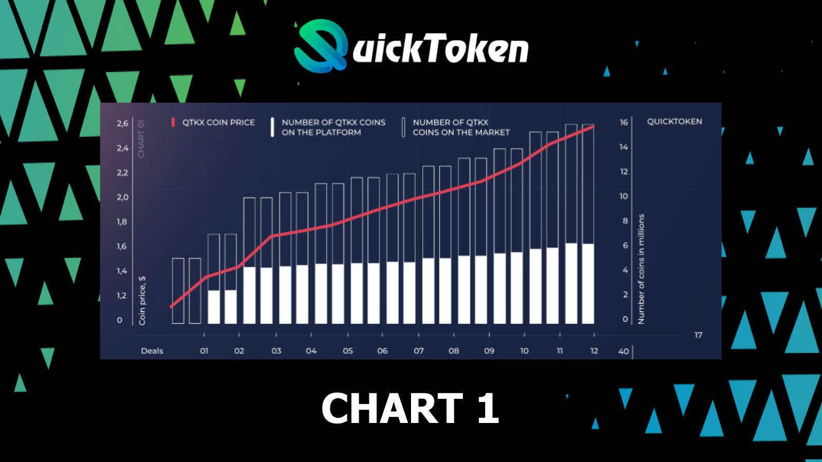Today we will conduct a financial review of #Quicktoken and analyze an example of possible market development of QTK and QTKX with the given market parameters, namely: