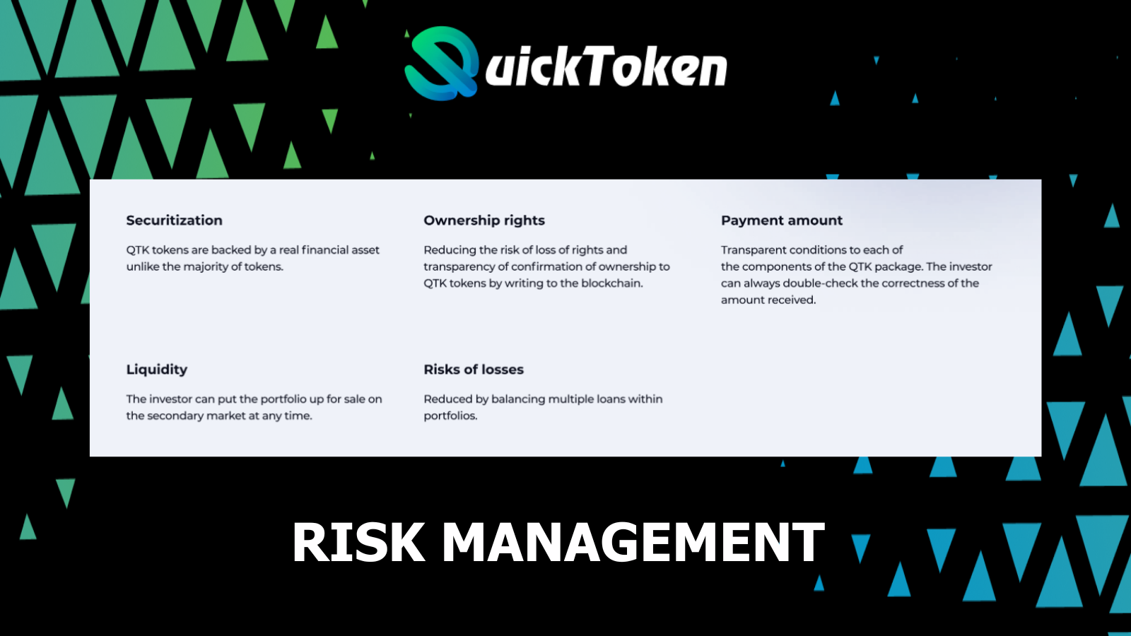 Today we will talk to you about risk management, for QTKX tokenized portfolio owners.