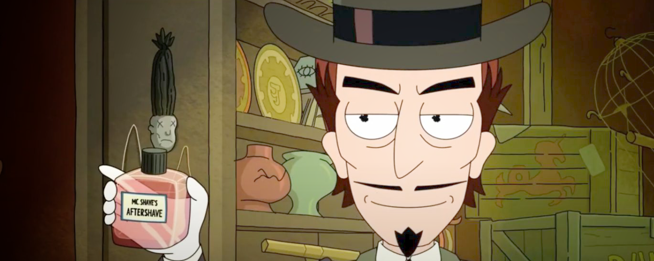 4. Маями Морти тусил как не в себя круглые сутки! А потом присоединился к остальным Морти и Рикам. Ему быстро наскучило, так что он повёл своего деда и Рика фермера на шоппинг