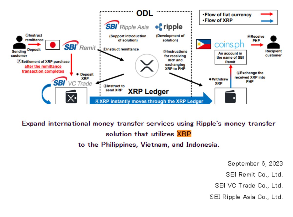 💥 С сентября 2023 года XRP будет использоваться банковскими учреждениями трех азиатских стран для международных денежных переводов с помощью SBI Remit, международного подразделения денежных переводов SBI Group