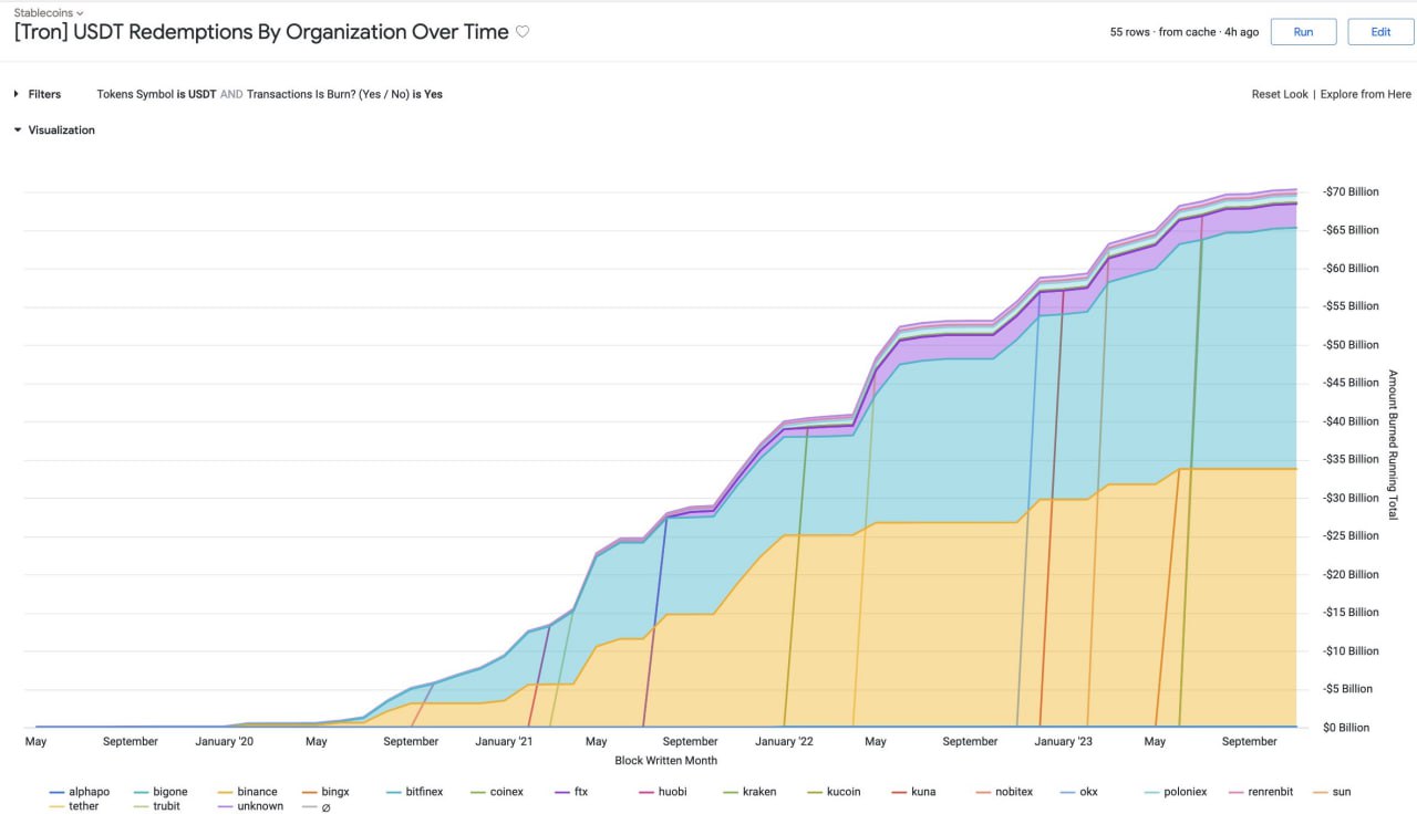 🧯Любопытный факт: главными гасителями USDT на Tron за всю историю являются Binance ($33,7 млрд) и Bitfinex ($30 млрд)