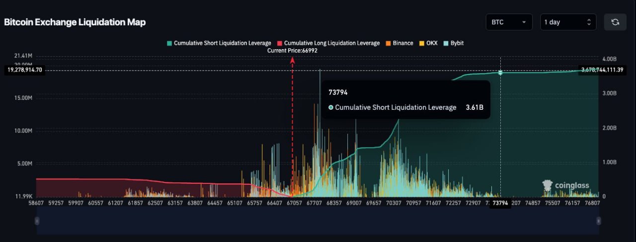 В ночь на первое апреля биткоин достиг в моменте отметки в $71 444, однако утром резко просел до $69 002.