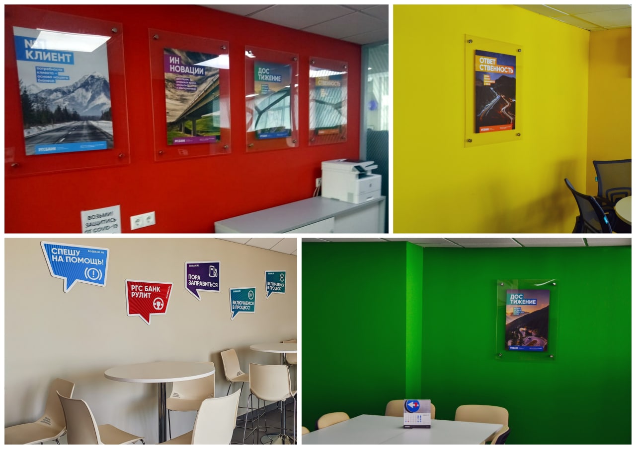 Ценности РГС Банка – это основа, на которую мы опираемся при принятии решений, как в глобальных для компании вопросах, так и при ежедневных действиях. И наши ценности - Клиент, Инновации, Достижение, Ответственность - должны по-настоящему проявляться в том, как мы думаем, как действуем и как общаемся. А для этого мы должны хорошо их знать. Поэтому теперь наши ценности появились и в оформлении офисов банка, чтобы они были всегда перед глазами и вам было проще следовать им.