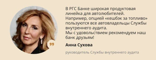- у нас уникальная продуктовая линейка для автолюбителей, например, опцией «кешбэк за топливо» пользуются все автовладельцы Службы внутреннего аудита. Мы с удовольствием рекомендуем эту карту друзьям!