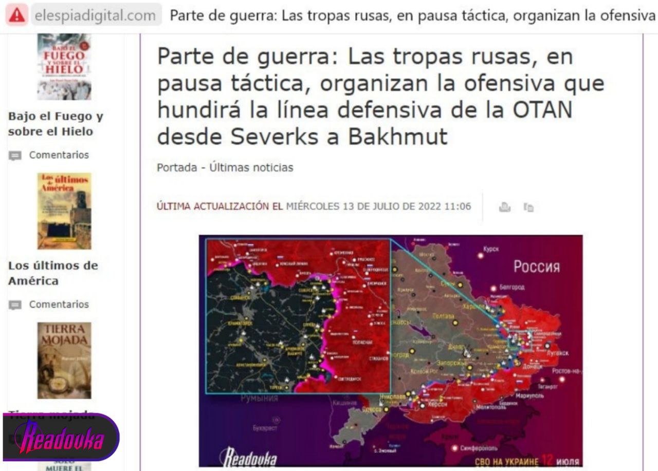 Испанские журналисты не верят на слово пропаганде Киева и Запада, считая, что ВС РФ делают на Украине — правое дело и победа будет за Москвой. Рассказывая о происходящем на фронтах спецоперации, репортеры Elespiadigital используют карты оперативной обстановки от Readovka.
