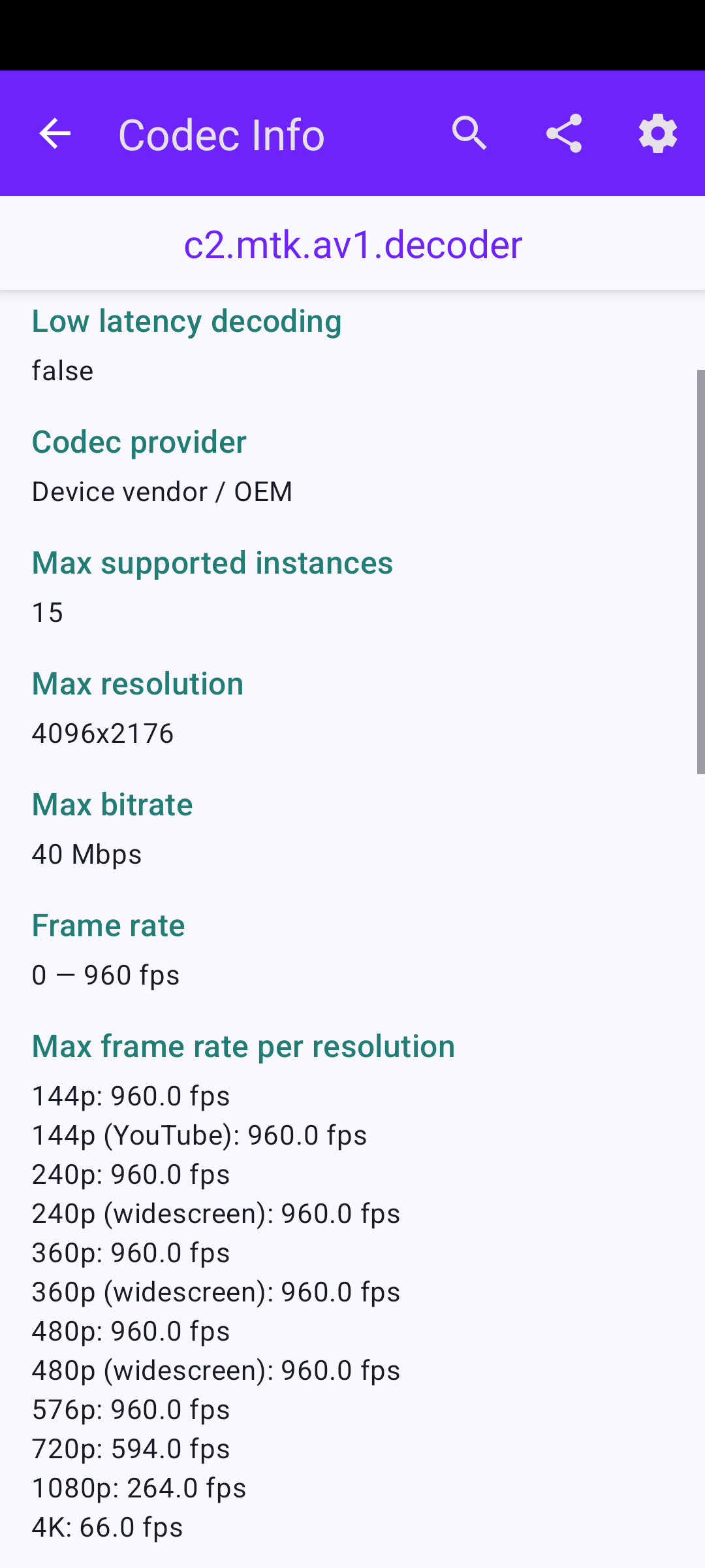 Хорошая новость состоит в том, что я купил именно тот смартфон (Tecno CAMON 20 Pro 5G), о котором до этого четыре раза упоминал на канале (первый раз — в видеозаписи 27 июня) как об одной из очень немногих таких новинок, в которых одновременно содержится и новый современный процессор (с аппаратным декодировщиком для видео AV1), и поддержка карт памяти. Декодировщик AV1 оказался очень достойным: Codec Info считает его способным декодировать 66 кадров 4K ежесекундно (скриншот прилагаю гиперссылкою).