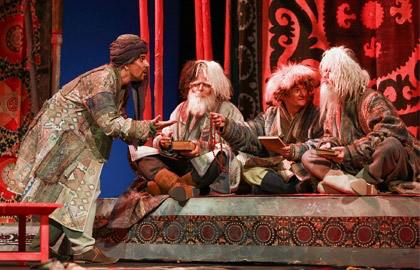 Для оформления сцены художник-постановщик Мария Рыбасова обратилась к богатым коллекциям Музея Востока и Британского музея, книгам, альбомам, изучила традиции вышивки декоративных полотен сюзане и иные промыслы народов Средней Азии.