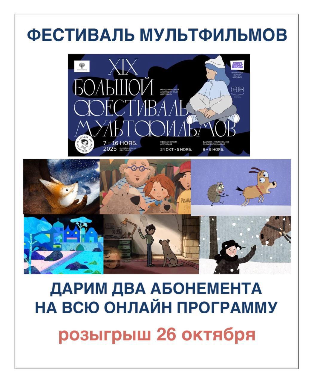 Ребята, напоминаю про розыгрыш онлайн абонементов на МульФест.