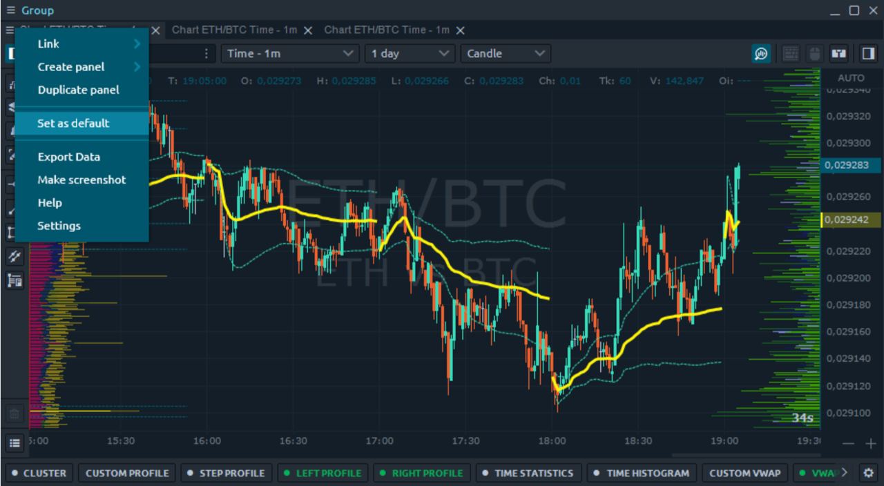 Если вы не хотите каждый раз настраивать новую панель, воспользуйтесь функцией установки по умолчанию (Set as default). Тогда каждая вновь открытая панель аналогичного типа будет открываться с заданными настройками.