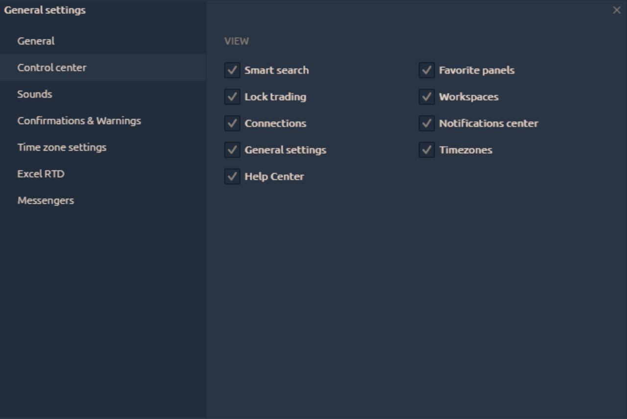 - Настройки (Settings). У каждой панели есть свои настройки. Вы можете настроить параметры по своему усмотрению и, в случае необходимости, сохранить эти настройки по умолчанию.