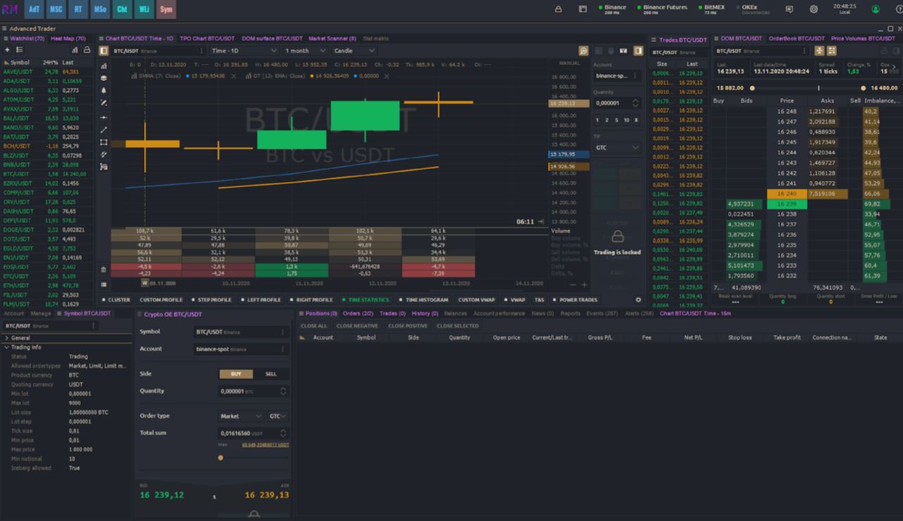 ROE Maker отличает высокая скорость работы, адекватный автотрейдинг с кнопкой «включить деньги», возможность создать мультиаккаунт для 10 криптобирж, кастомизация с функцией передачи конфига, таймфреймы короче одной минуты в режиме реального времени и самый широкий выбор инструментов.