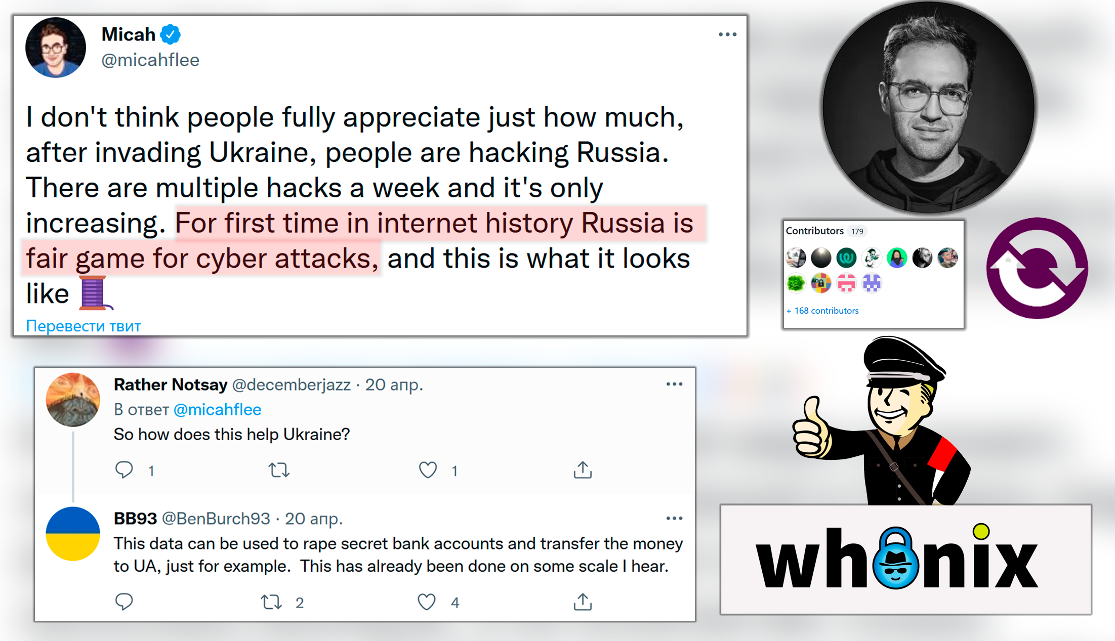 Мика Ли (Micah Lee), инженер по компьютерной безопасности и разработчик 🧅"OnionShare" (инструмент с открытым исходным кодом для безопасного обмена файлами через сеть Tor), автор проектов "Danger zone" и "semi ephemeral" родил в своём Twitter громкий пост на тему того, что наконец-то впервые за всю историю интернета Россия столкнулась c "честной игрой" в виде кибератак.