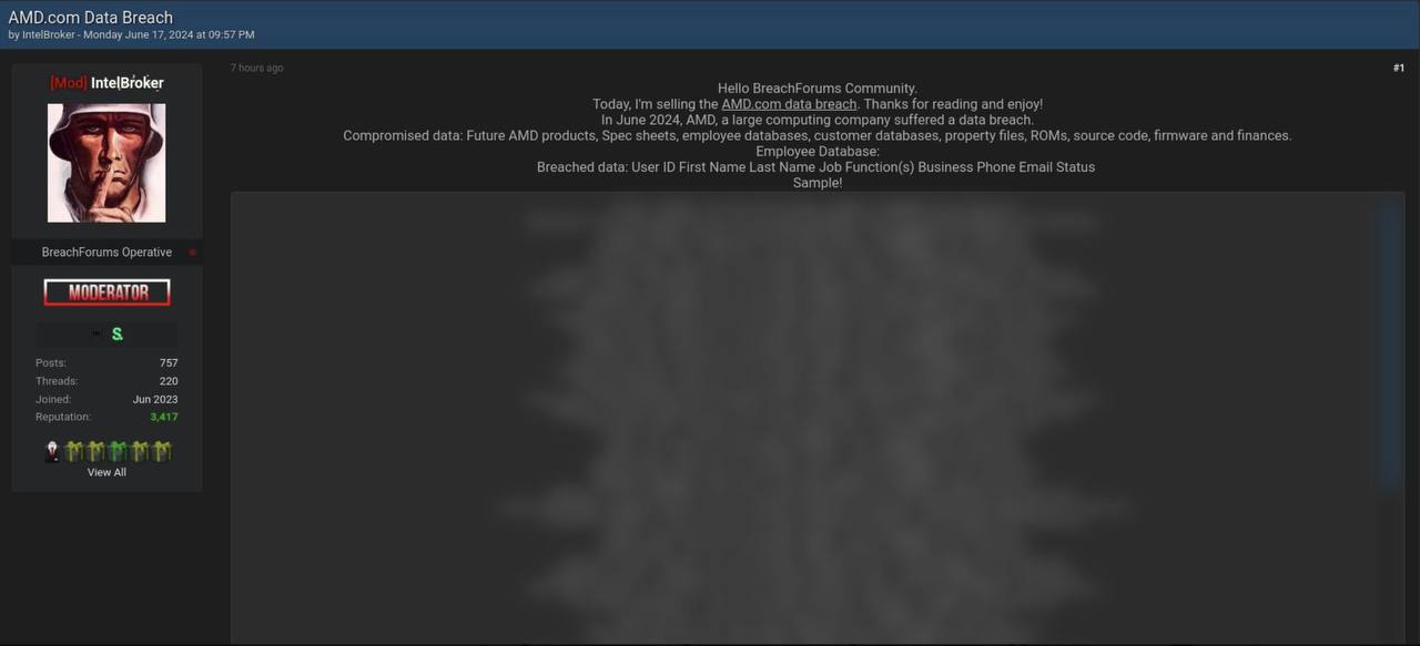 ͏Имеющий серьезную репу в киберподполье Intelbroker наносит новый удар. На этот раз по не менее авторитетному производителю AMD.