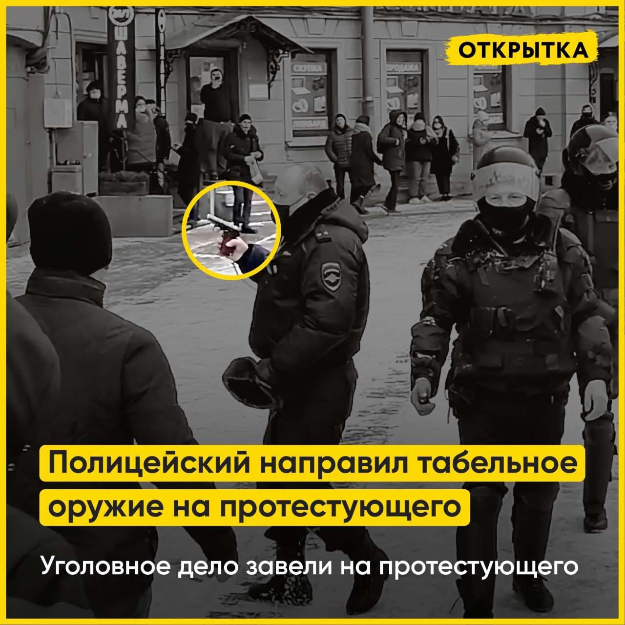 Полицейский направил табельное оружие на протестующего. Уголовное дело завели на протестующего.