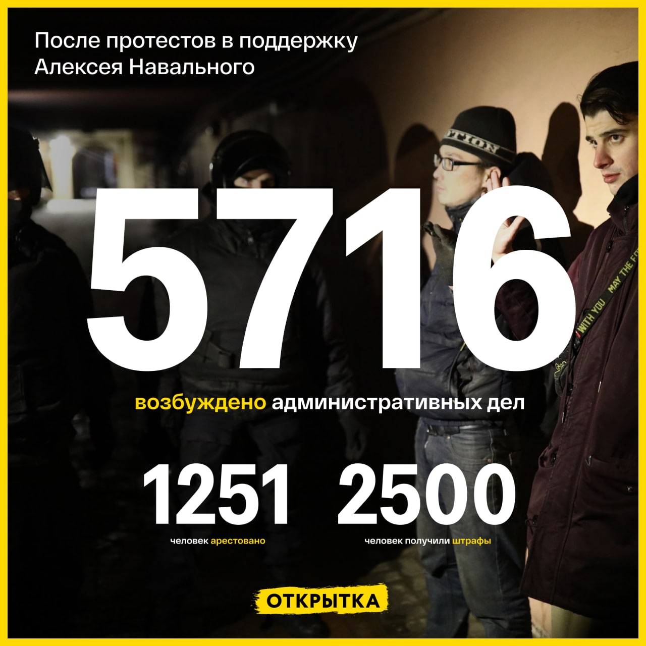 5716 административных дел возбуждено после протестов в поддержку Алексея Навального