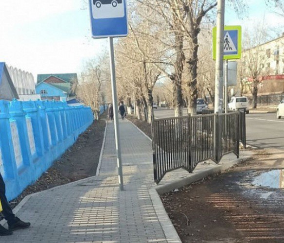 ​​В Улан-Удэ дорожный знак установили посреди тротуара