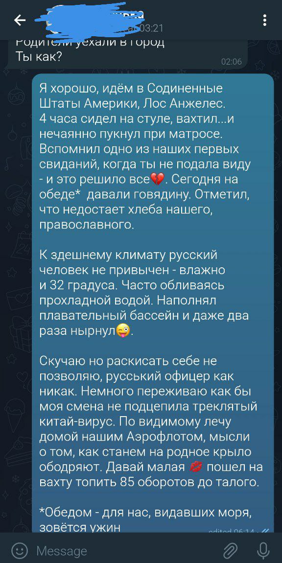 Однако же - дядя решил заменеджить и вырубил нам судовой инет, типа чтобы не читали новости и не кидались друг на друга. Слопчест тоже закрыт - ибо нех синячить в тяжёлое время🔪🩸. Вот и сидим от порта до порта, чтобы за любой роуминг💰 хоть как то связаться с семьёй...а дяде пи#@&, если продолжит в том же духе.