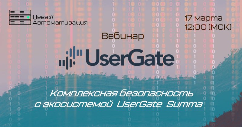 🎙Компания «Нева-Автоматизация» в партнёрстве с UserGate приглашают Вас принять участие в вебинаре "Комплексная безопасность с экосистемой UserGate Summa", который состоится 17 марта в 12:00 (МСК).