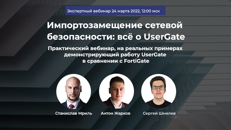 Регистрируйтесь на вебинар «Импортозамещение сетевой безопасности: всё о UserGate», который пройдет 24 марта в 12:00.