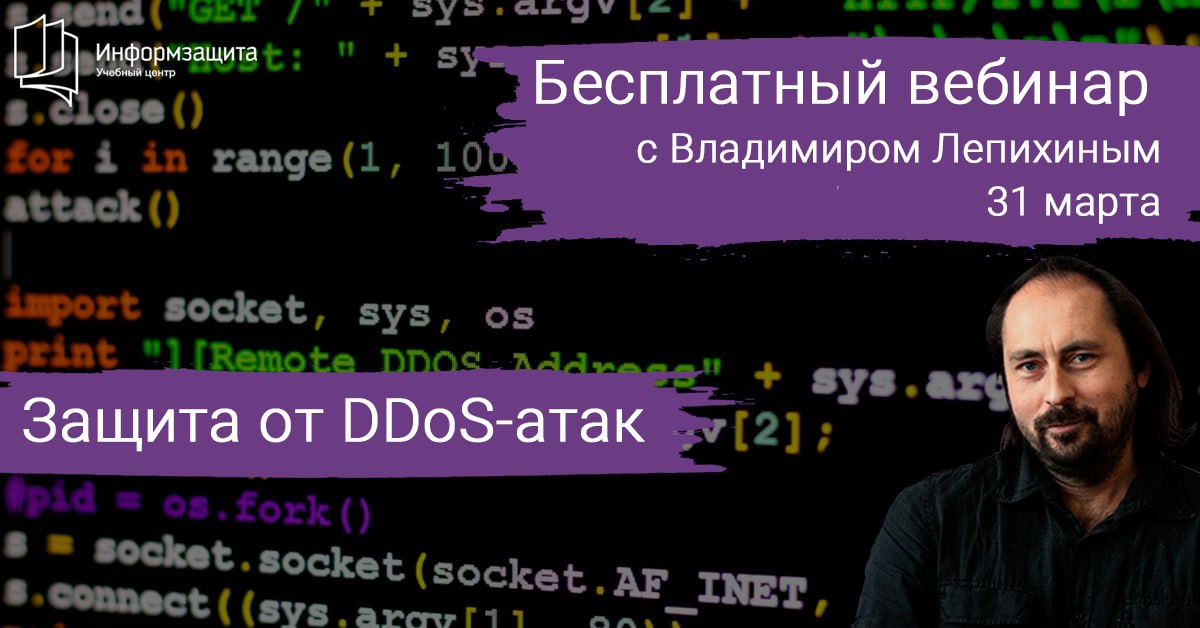 Вебинар посвящён авторскому практическому курсу «Организация защиты от DDoS-атак». Участникам вебинара предоставляется скидка 15% на участие в группе 13-14 апреля.