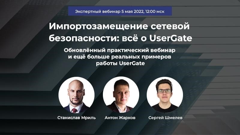 Регистрируйтесь на вебинар «Импортозамещение сетевой безопасности: всё о UserGate», который пройдет 5 мая в 12:00.