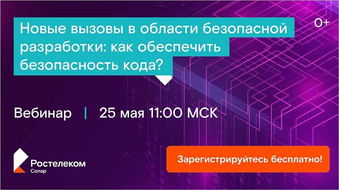 25 мая в 11:00 (МСК) на открытом вебинаре «Ростелеком-Солар» мы расскажем, какие сюрпризы может таить Open Source и что делать разработчикам и ИБ-специалистам, чтобы сократить киберриски от его использования в текущих реалиях.