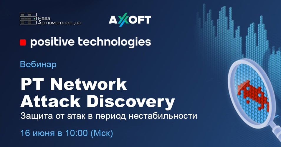 Нева-Автоматизация в партнерстве с дистрибьютором Аксофт приглашают вас на вебинар "Защита от атак в период кибернестабильности. Positive Technologies Network Attack Discovery", который состоится 16 июня в 10:00 (по Москве)