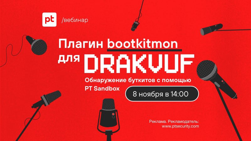 🎙Вебинар «Плагин bootkitmon для DRAKVUF. Обнаружение буткитов с помощью PT Sandbox»