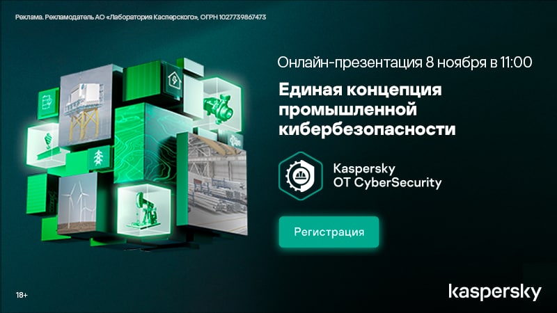 8 ноября в 11:00 «Лаборатория Касперского» представит экосистему промышленной кибербезопасности - Kaspersky OT CyberSecurity.