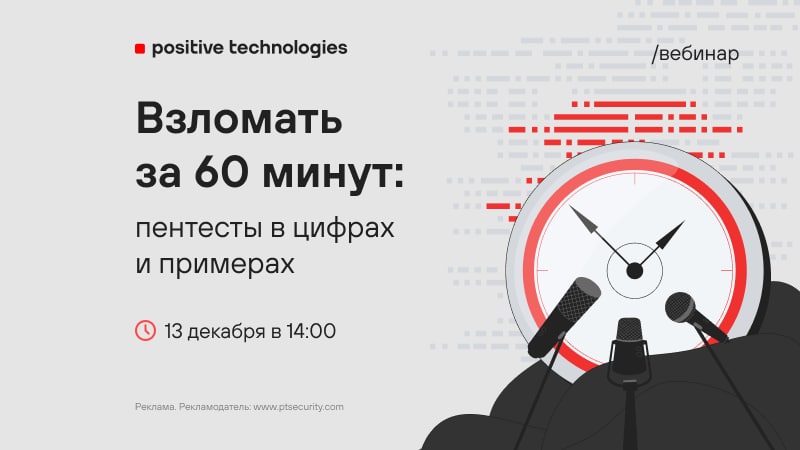 Вебинар Positive Technologies «Взломать за 60 минут: пентесты в цифрах и примерах»
