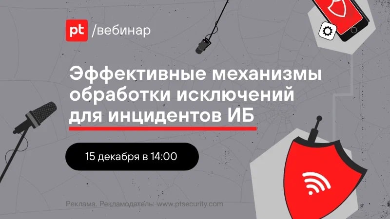 🎙Вебинар Positive Technologies «Эффективные механизмы обработки исключений для инцидентов ИБ»
