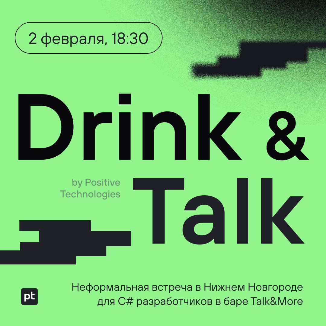 Где собираются лучшие C# разработчики? На митапе Positive Technologies, который пройдет 2 февраля в Нижнем Новгороде! Встречаемся в 18:30 в баре Talk&More 🍺