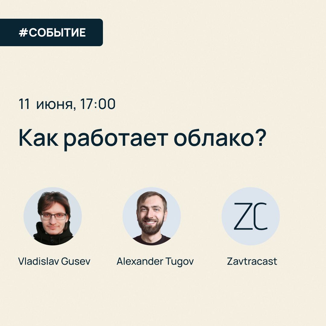 Сегодня Саша Тугов, директор по развитию услуг, и ведущий системный инженер Влад Гусев в войсчате @zavtracast обсудят, как устроены облачные сервисы и что за ними стоит.