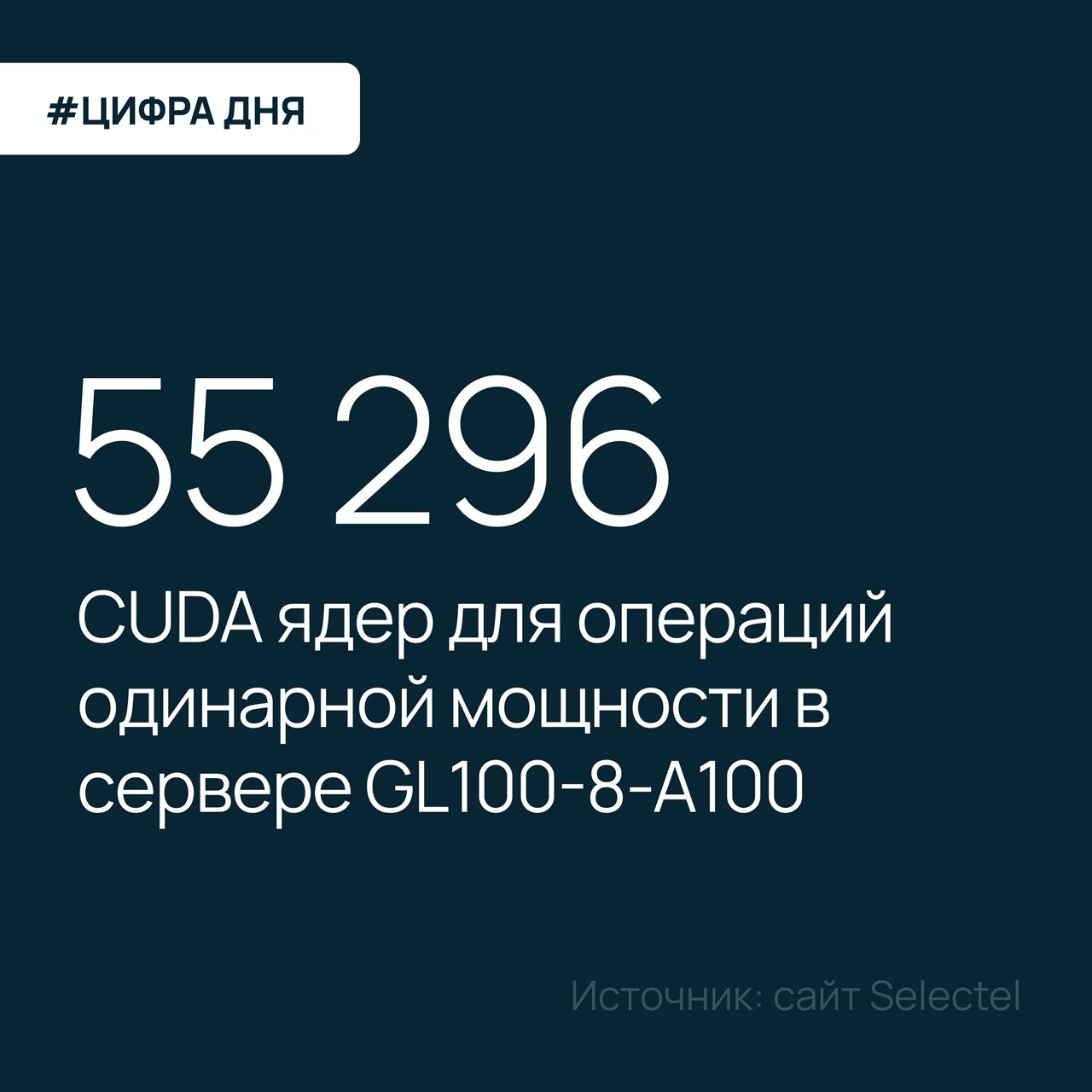GL100-8-A100 — наша самая мощная конфигурация выделенных серверов по числу CUDA® ядер. В ней 8 видеокарт NVIDIA A100, 2 процессора Intel Xeon Gold 6240 (2.6 ГГц и 36 ядер), 2 SSD накопителя на 480 ГБ и 2 NVMe диска по 3840 ГБ каждый.