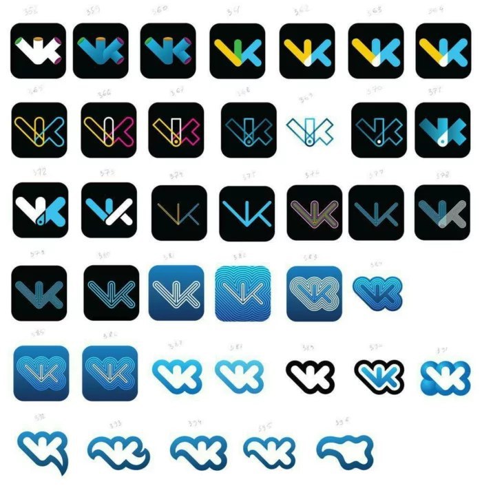 Логотип с двумя буквами VK для «ВКонтакте» разрабатывала «Студия Лебедева», рассказал в своём Telegram-канале Артемий Лебедев. По его словам, компания успела создать 403 черновых варианта: несколько из них он опубликовал.