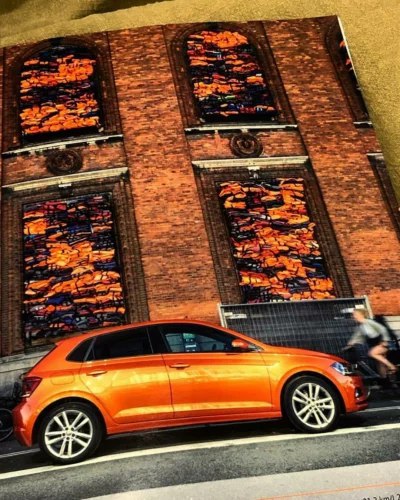 Инсталляция использовалась в качестве фона для оранжевого VW Polo без моего ведома или разрешения компании, которая импортирует автомобили Volkswagen в Данию. Эти действия являются явным нарушением моей интеллектуальной собственности и моральных прав, но, что более важно, они поднимают более широкие вопросы корпоративной власти и ответственности в нашу эпоху глобального капитализма.