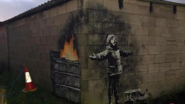 «Рождественское» граффити от Бэнкси: ребёнок ловит хлопья «снега»