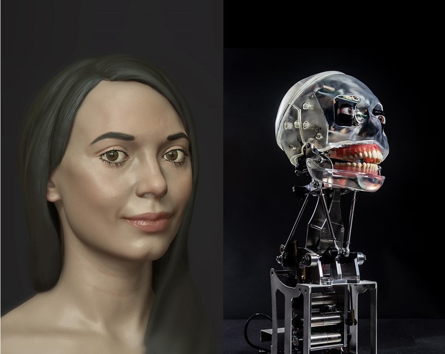 Чтобы Ай-Да смогла рисовать, ей спроектировали бионическую руку с большим диапазоном движений. У робота силиконовая кожа, глаза со встроенными камерами, реалистичные зубы и десны.