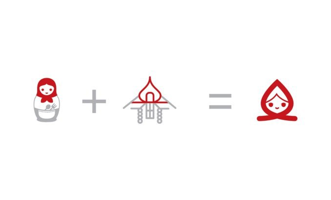 Теперь символ совмещает верхнюю часть матрёшки в платке и верх русского терема.